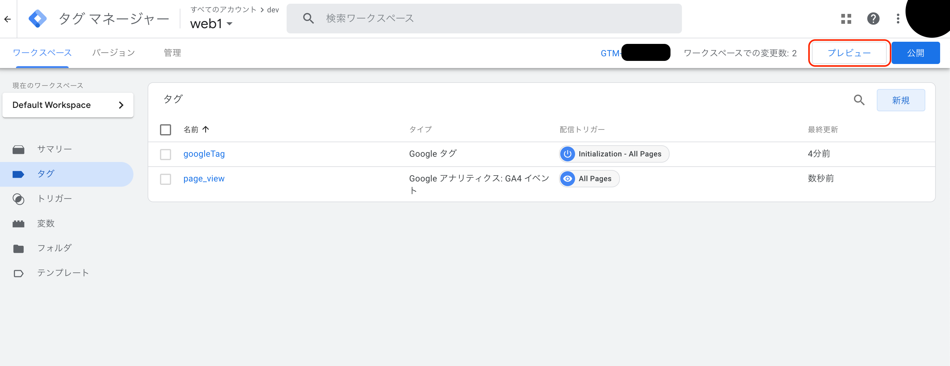 ここまででgtmの埋め込み自体は完了しました!とても簡単でびっくりです。