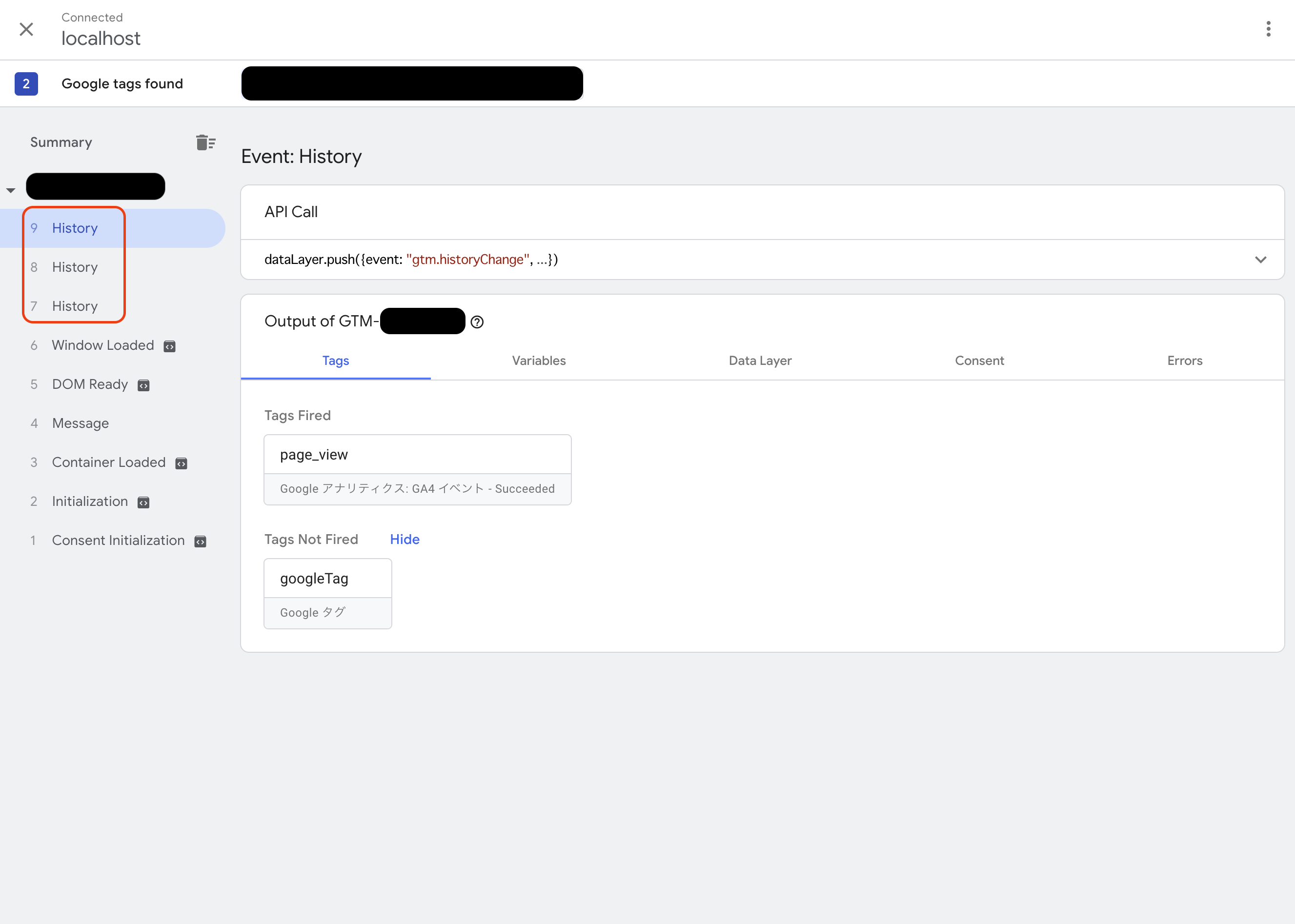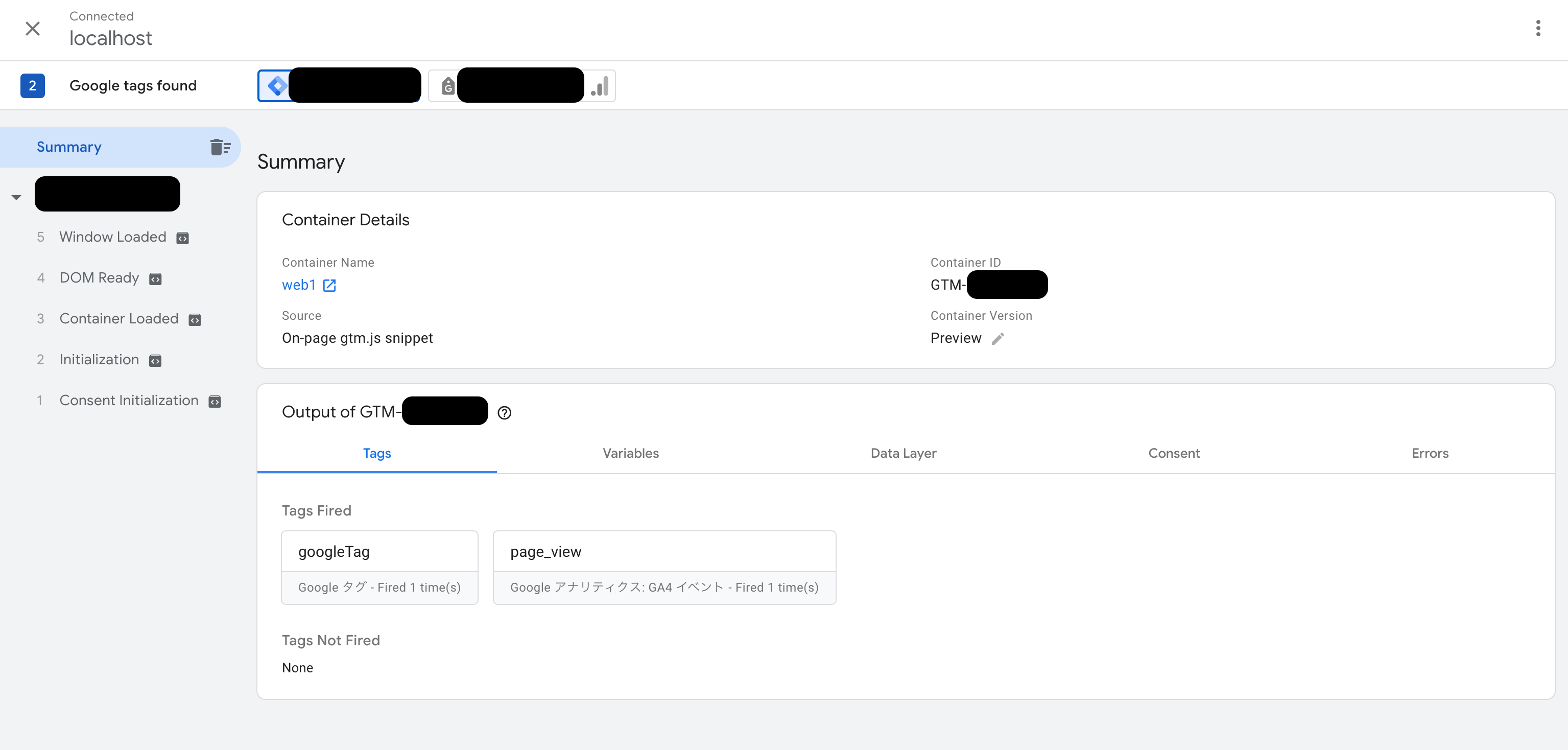 このような画面が表示され、初期化などの処理が走っており、しっかりタグが働いていることを確認できました
