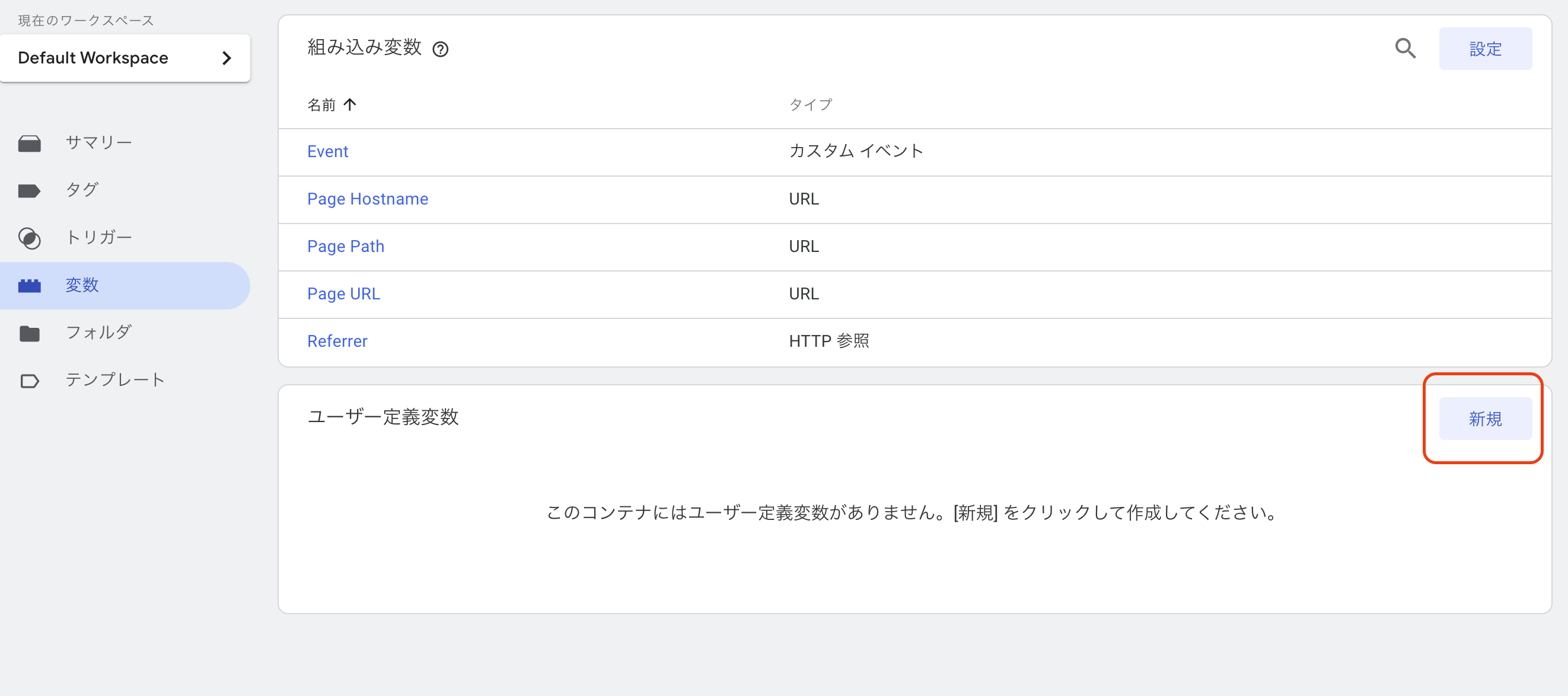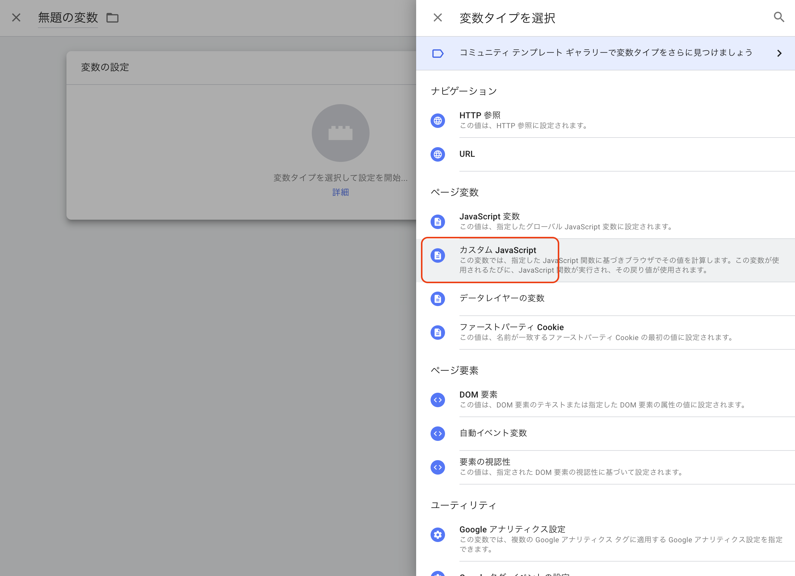 もう一個変数を追加。カスタムJavaScriptというものを使います