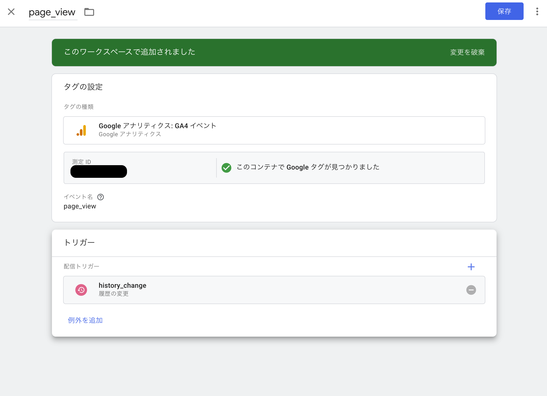 ここまで来たら、page_viewのトリガーを先ほど作成したトリガーに変更します