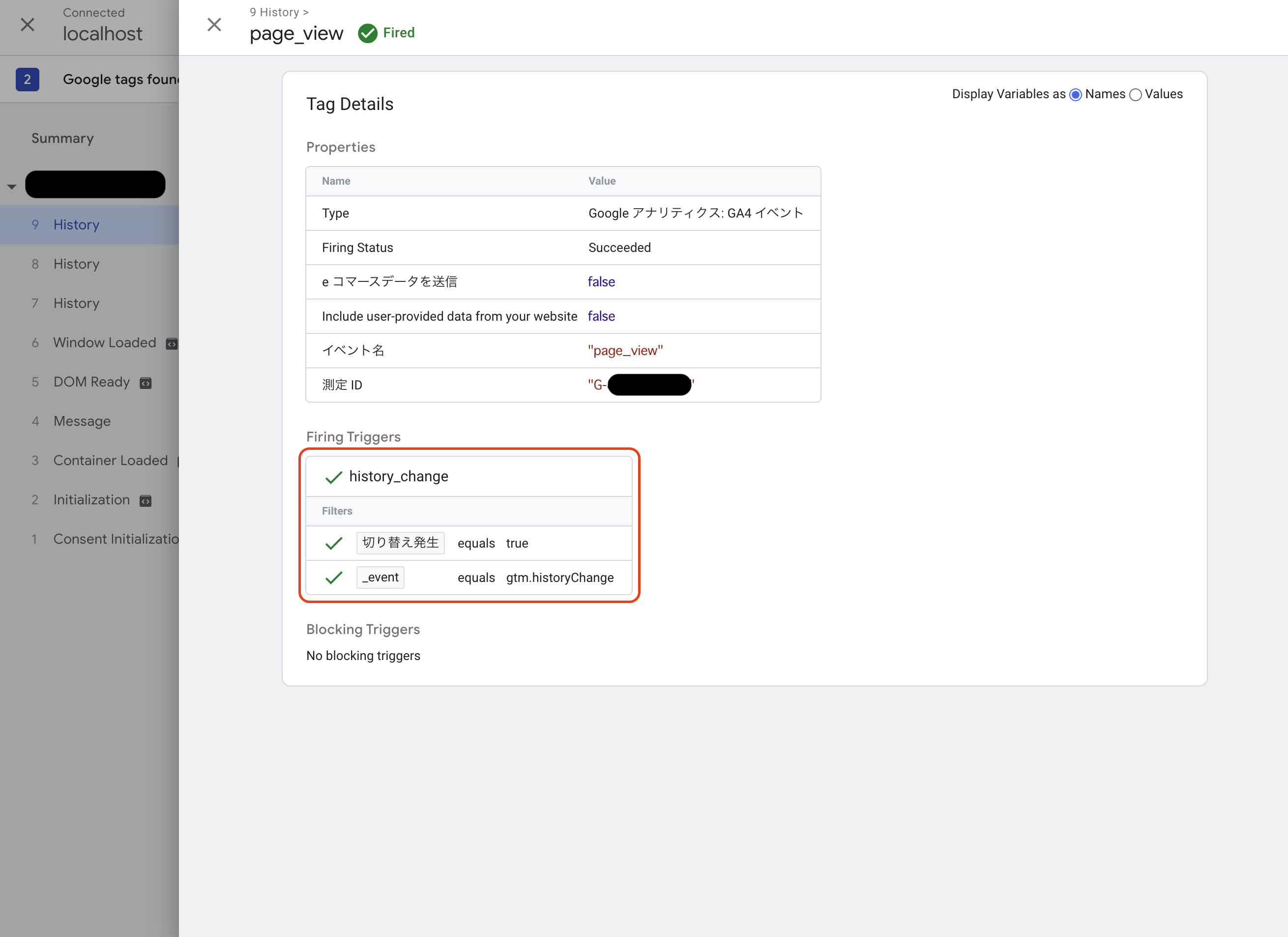 これでweb上のコード変更無しにSPAからのpage_viewイベントの送信ができましたね!すごい!
