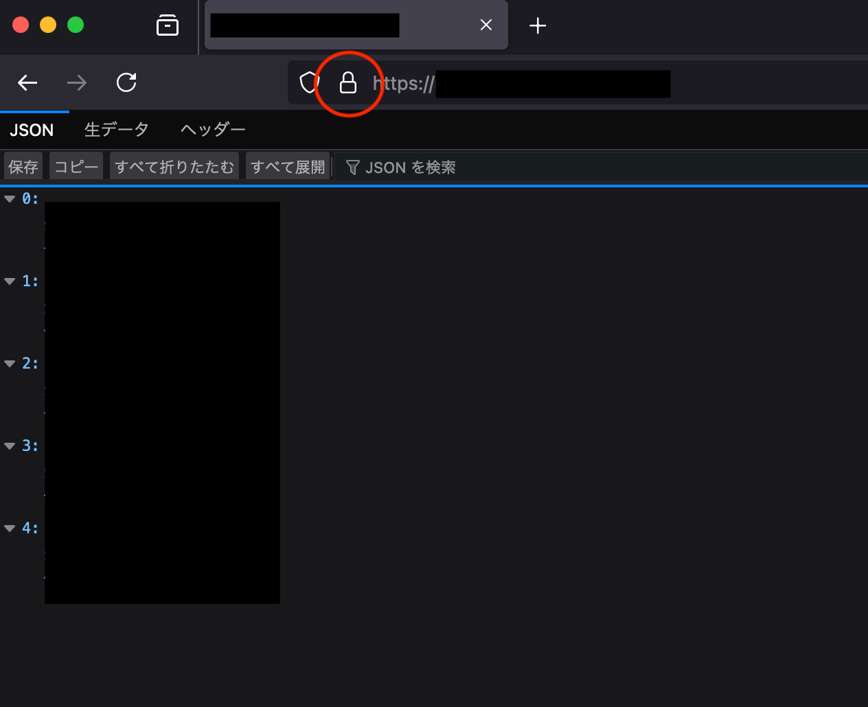 早速見に行ってみましょう Firefoxから今回使用するAPIのエンドポイントに飛びます