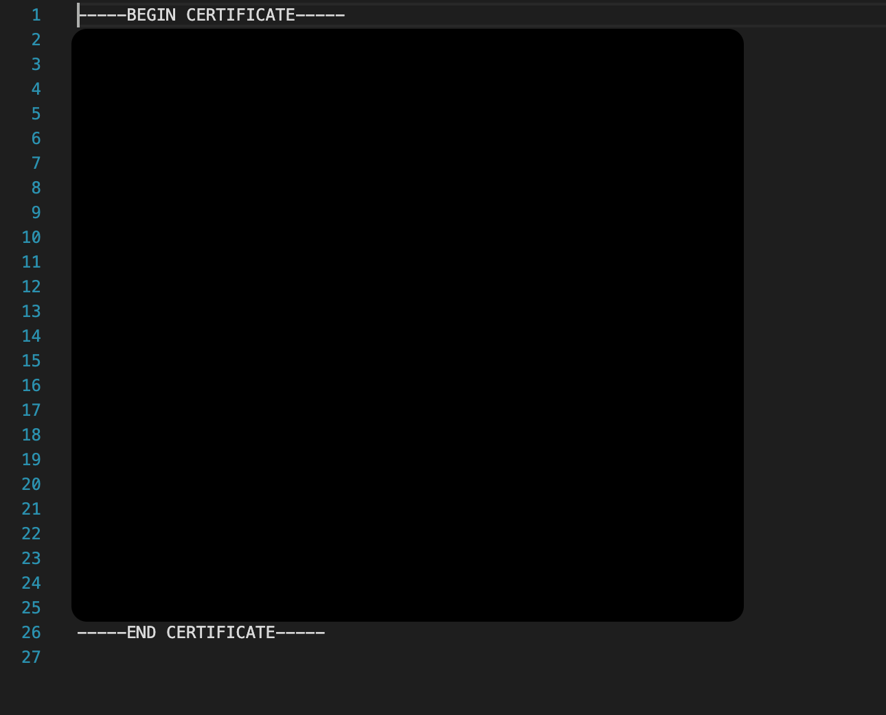 ---BEGIN CERTIFICATE---から---END CERTIFICATE---まで全てコピペします