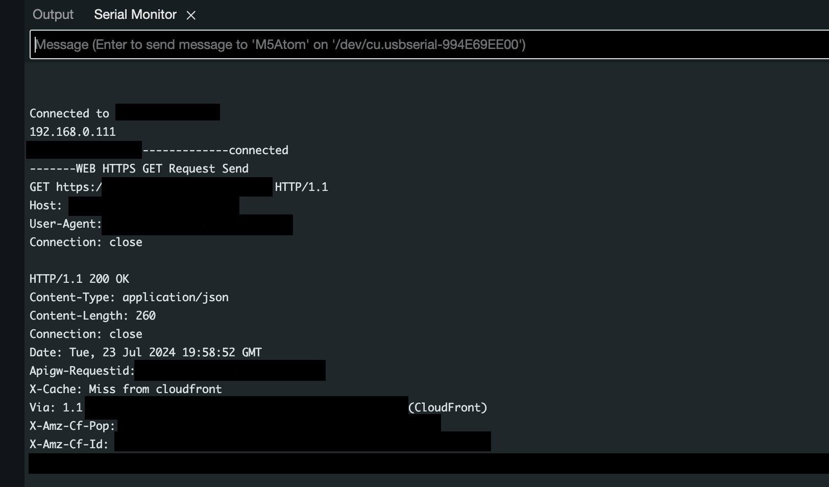 Serial Monitorから確認してみると、しっかりgetできていますね!