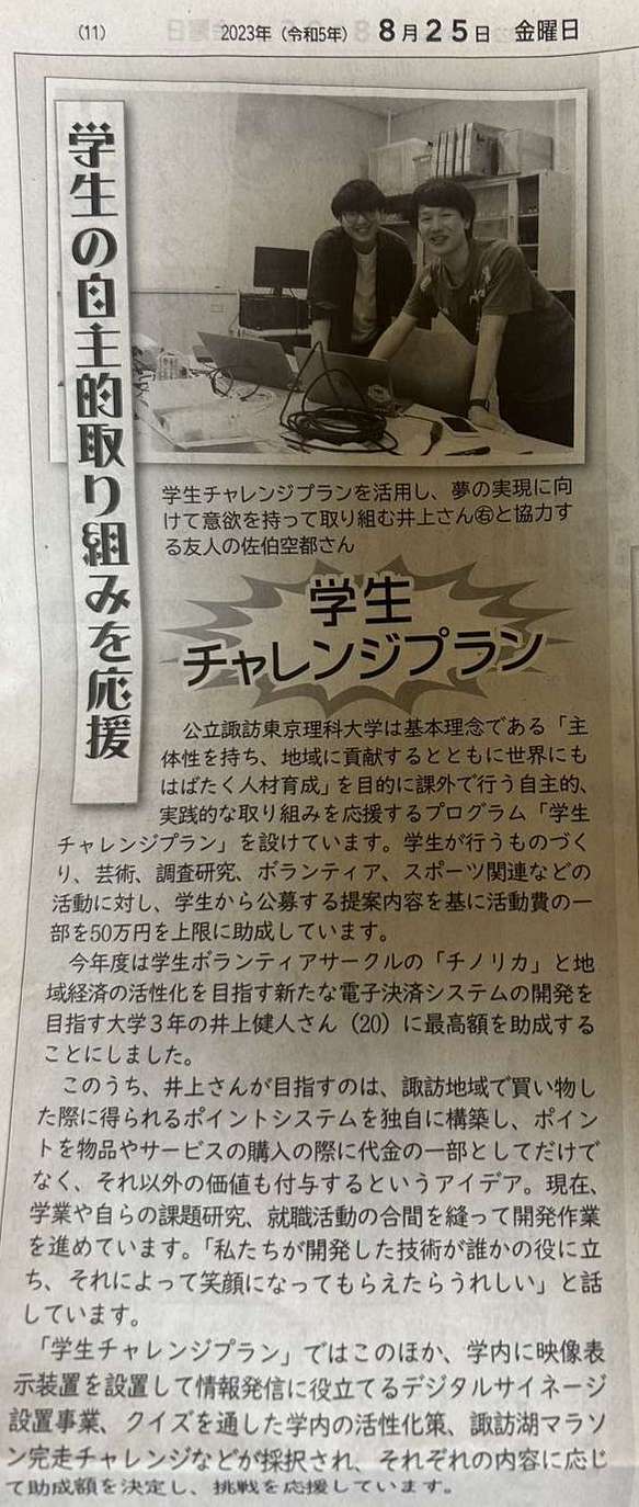 2023年8月25日 新聞掲載 — 学生チャレンジプラン